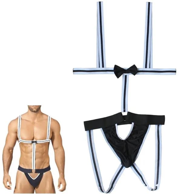 Игривый боди Официанта создан для тех, кому нравятся эксперименты. Боди выполнено из плотных стрейч лент.